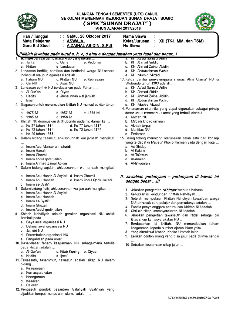 Soal aswaja kelas 8 semester genap. Check spelling or type a new query. We did not find results for: Maybe you would like to learn more about one of these?